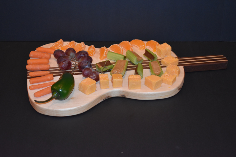 Wow your dinner party guests with this charcuterie board! This handsome board, made from walnut and maple, will please both the epicurean as well as the music lover.Click for larger image